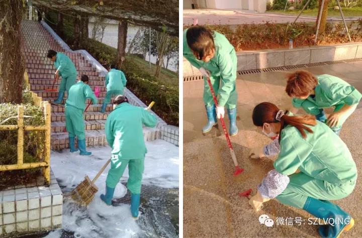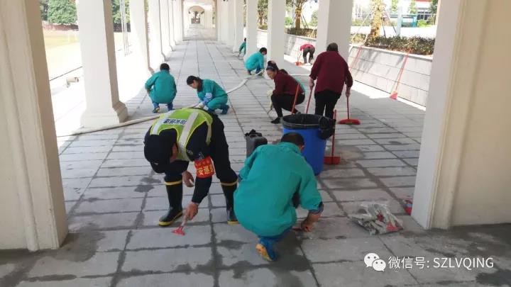 為助力龍崗二職迎評“省重”工作,項目10月底,就開始加班加點工作,周末基本無休,將全校里里外外的衛生都打掃了一遍,哪怕一個煙頭也不放過。有人手上磨出了血泡,但沒人埋怨。