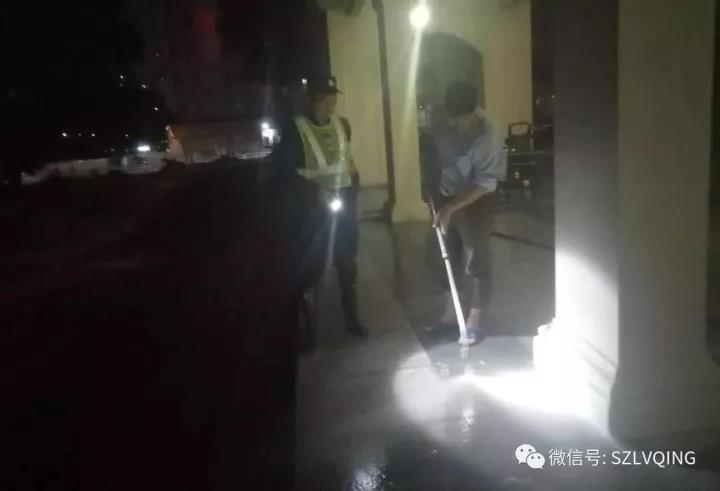 大家一點一點清洗,累了就替換,最終趕在凌晨四點半把整個長廊沖洗完畢。