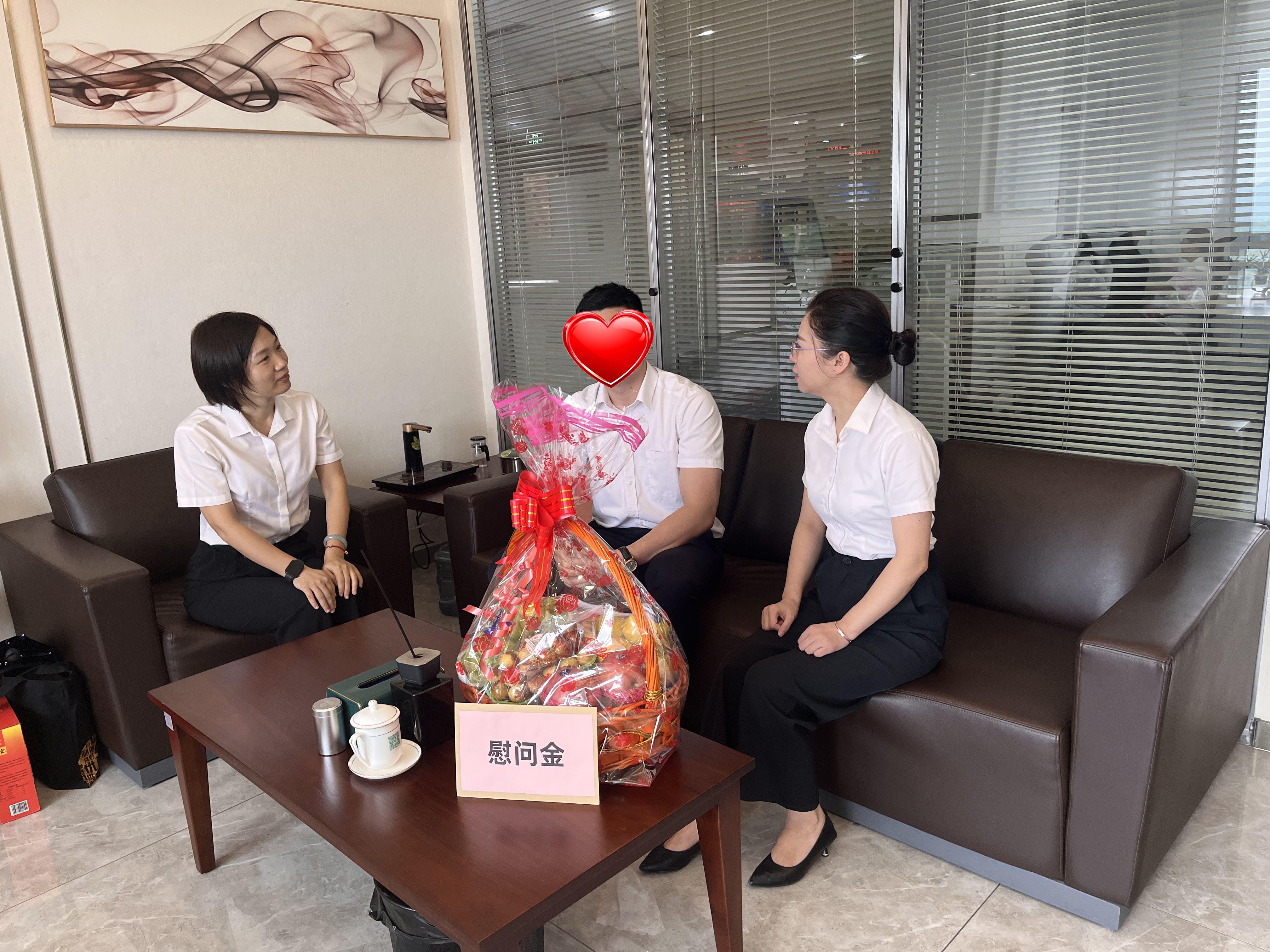 綠清支部書記齊慧、工會主席張新艷一行在洪某辦公室進行慰問。